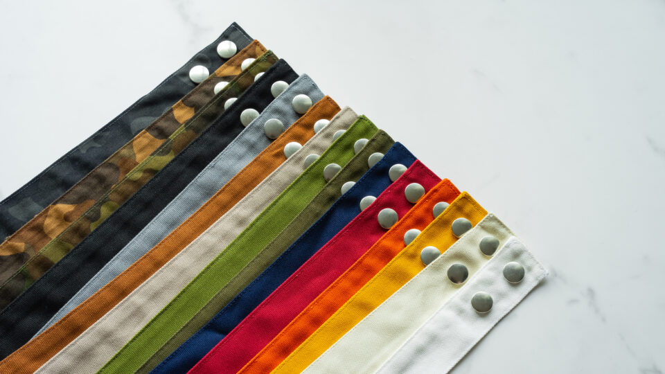 胸ポケットと肩紐を、スナップボタンで簡単に色をカスタムできるんです!