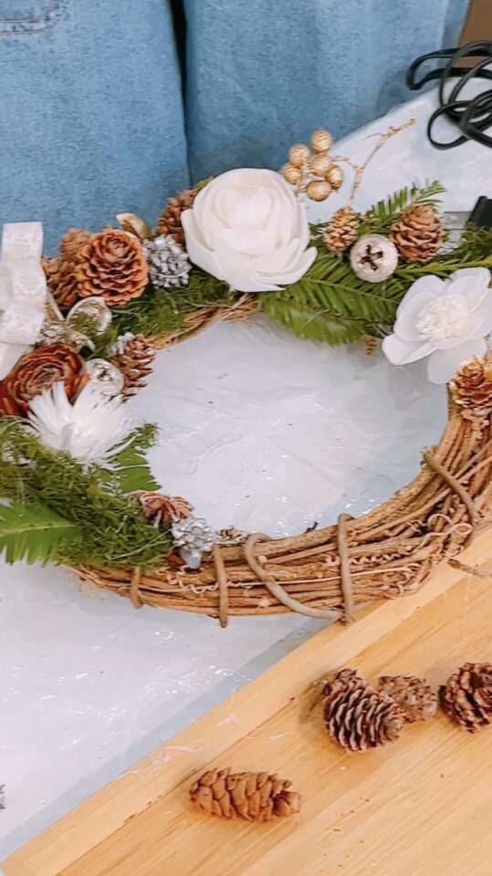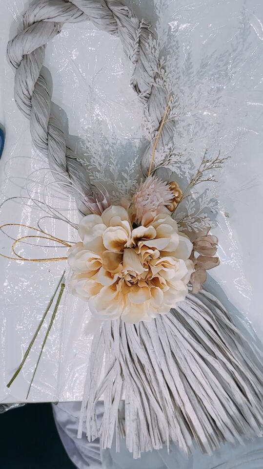 たくさんあるパーツの中から好きなものを選んでリースやしめ縄を作ります。