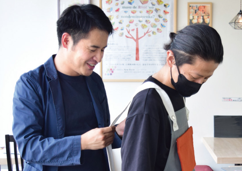 - 「エプロンを遊ぶ」です。機能性としてはもちろんですが、ファッションの表現としてエプロンを楽しんでほしいです。