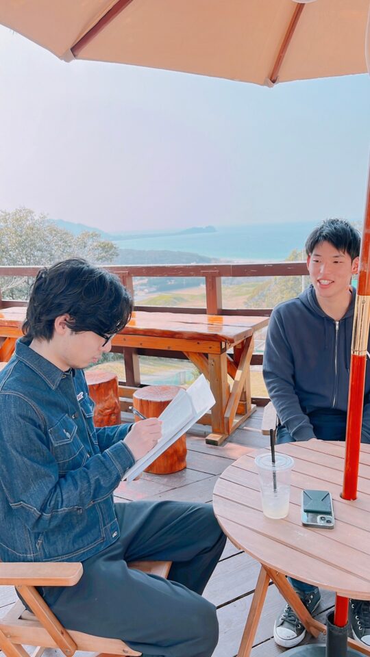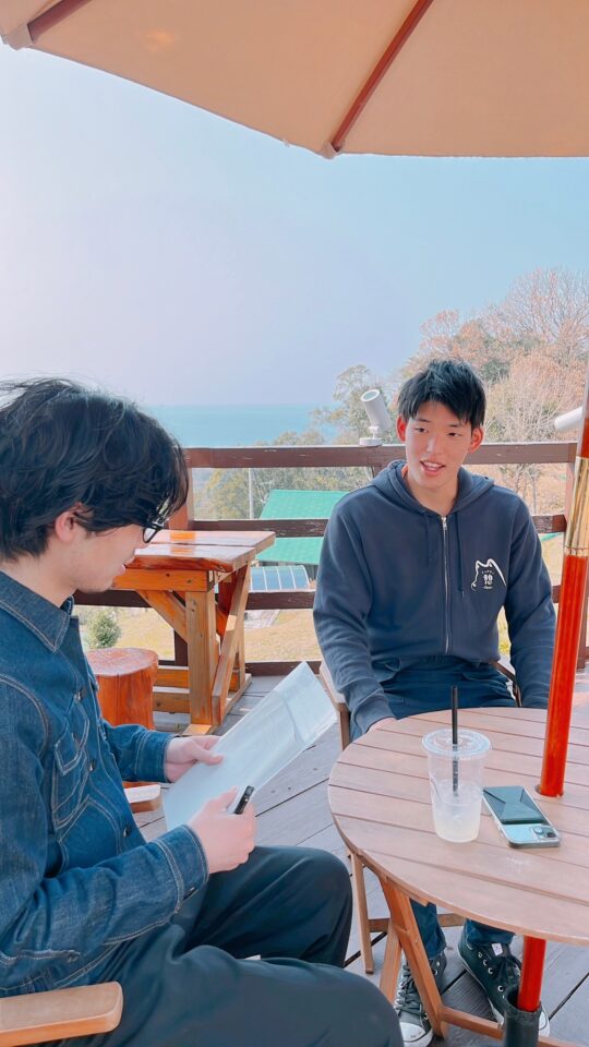 青空の下でのインタビュー。今までにないシチュエーションでわくわくしました。