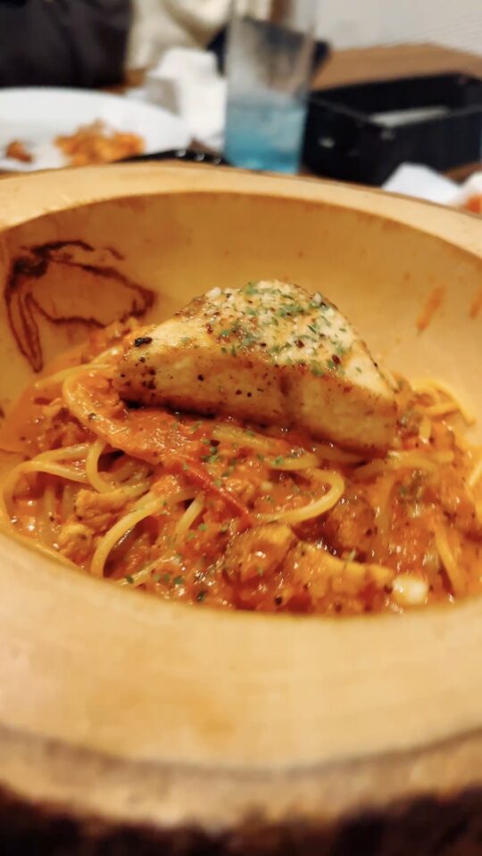 アカシアの木でできたボウルでやってきました…贅沢なパスタ!