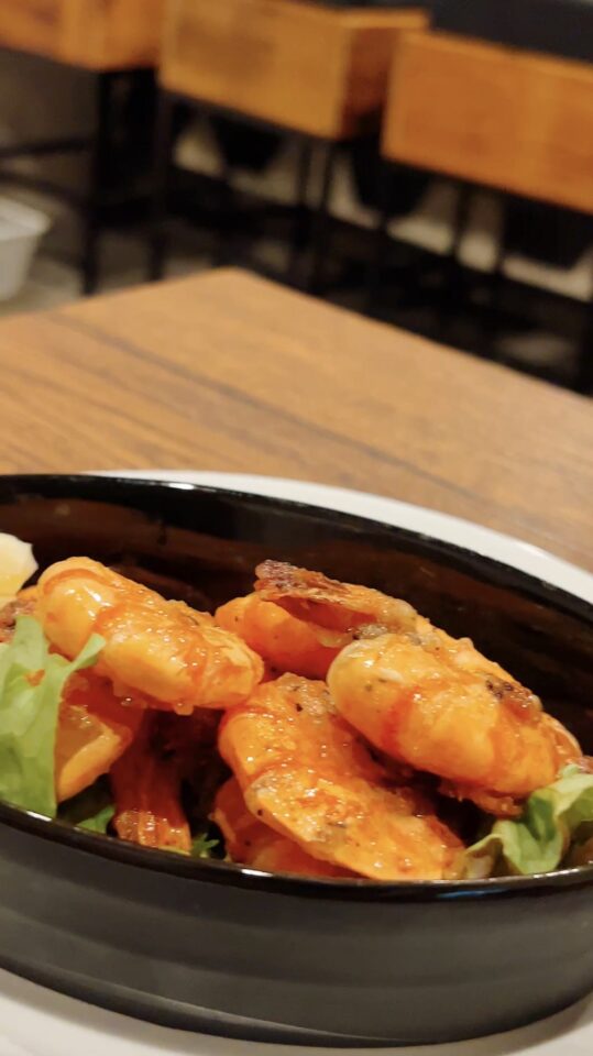 ガーリックがたっぷりのエビ…おつまみに良すぎます。