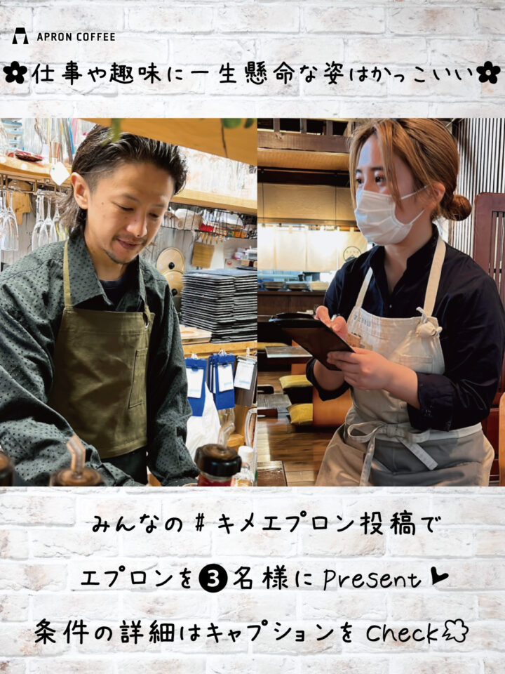 抽選で3名様にAPRONCOFFEのエプロンを1着ずつPresent❣️